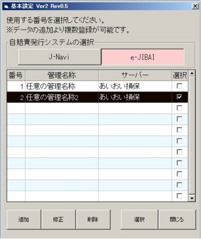 自賠責マスタの基本設定画面が起動します。追加・修正・選択変更などができます。 |