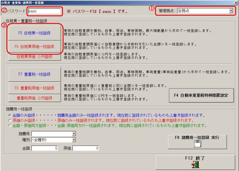 *粗利益計算をされている方は【F6自賠責原価一括登録】も合わせて実行してください。 |