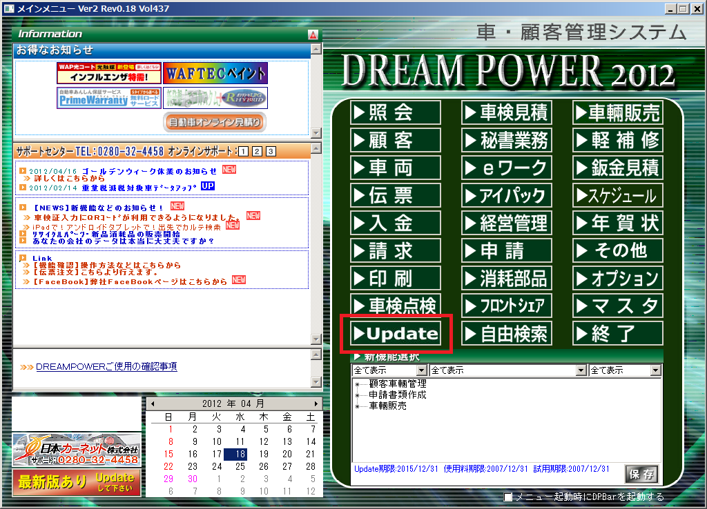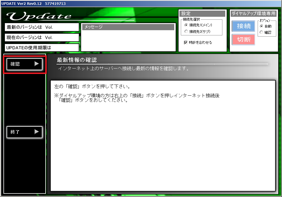 メインメニュー:Updateボタンを押します。