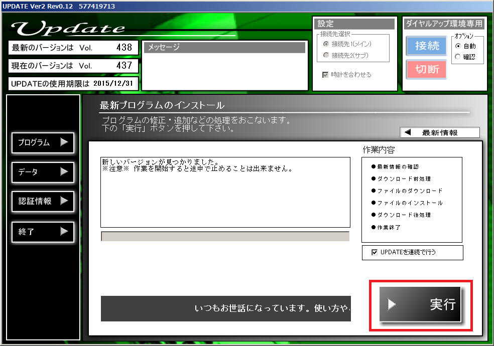 現在のバージョンがVOL438になったことを確認します