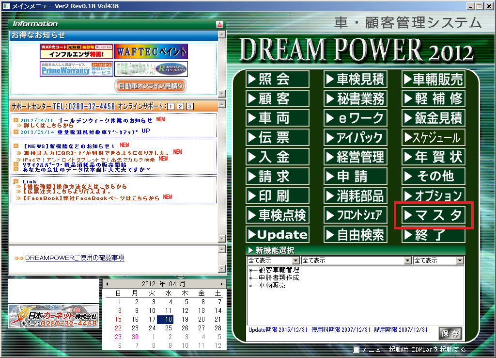 メインメニュー:マスタ