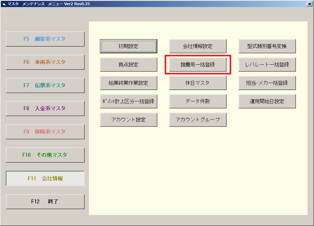 F11会社情報:諸費用一括登録 ボタンを押します