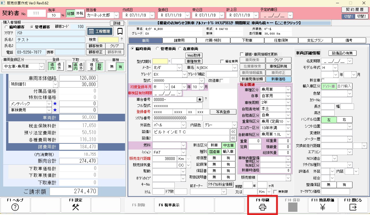 1. 契約書の内容を入力後、「印刷」をクリックします。