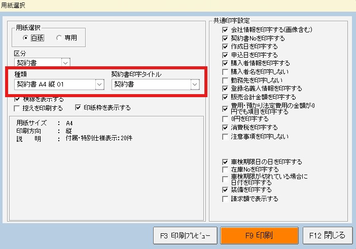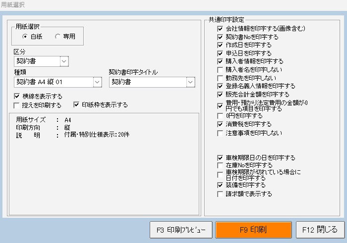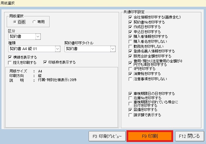 3. 設定・確認が完了したら、「印刷」をクリックすると契約書が印刷されます。