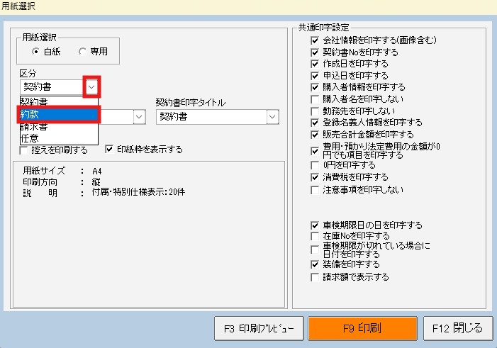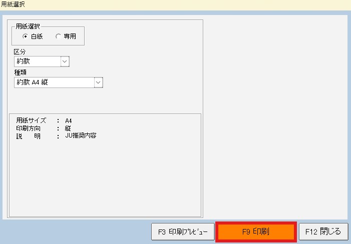 7. 印刷サイズが契約書と同じになっているか確認し、「印刷」をクリックして操作は完了です。