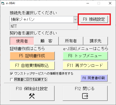 1.e-jibai連動画面を開き、[F9 接続設定]をクリックします。