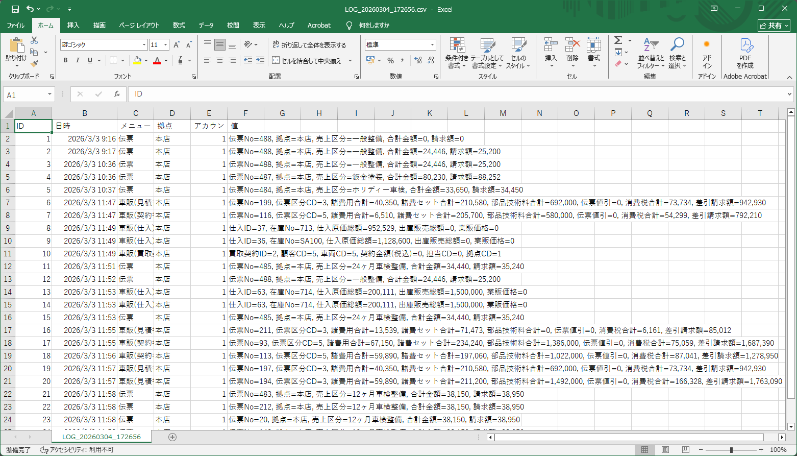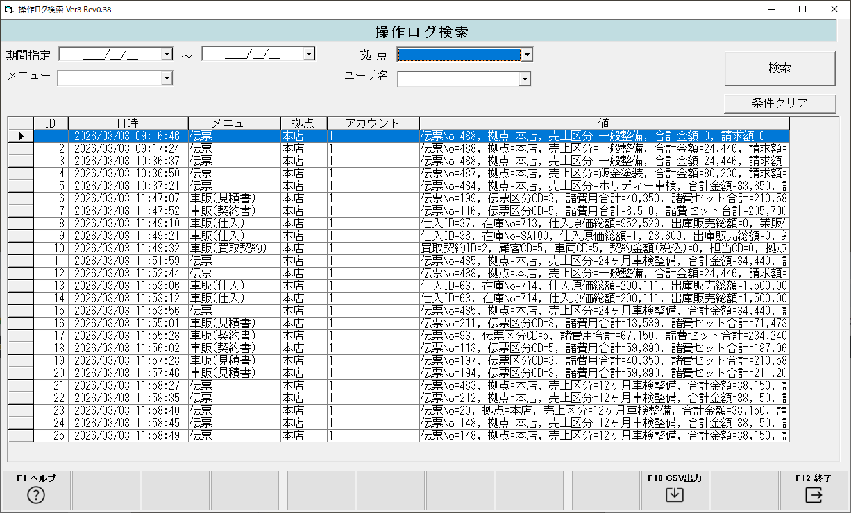 顧客や伝票などのデータを保存した際に、主要項目をログとして記録する機能です。