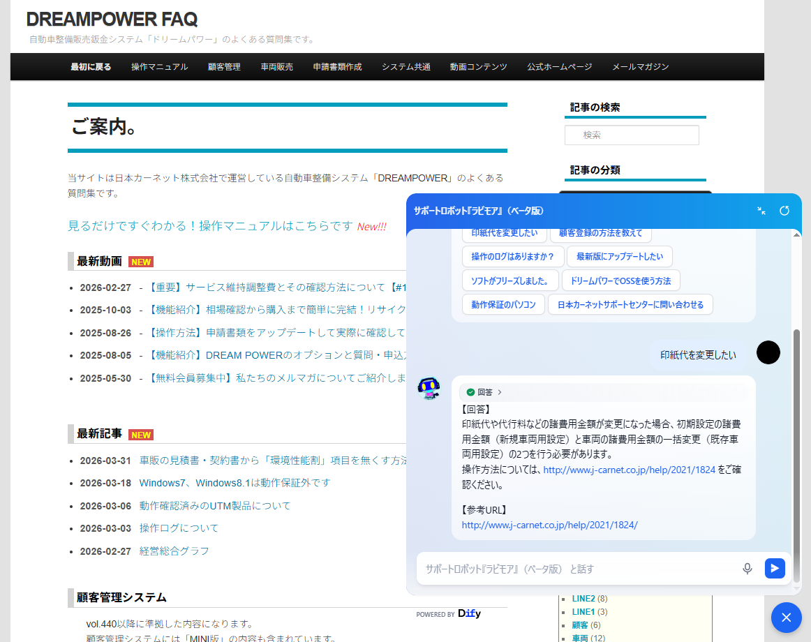 サポートロボット「ラビモア」(ベータ版)は、FAQページの内容をもとに回答してくれるAIです!