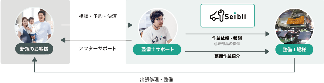 人間が作業する以上、ミスは起こり得ます。Seibiiのサービスは、あくまでSeibiiのブランド・品質・責任でお客様にサービスを提供しています。従い、メカニック個人に責任を押し付けることはなく、トラブルの際には、Seibii側にて不具合が起きた理由を事実確認し、お客様とのやりとりを引き継ぎますので、整備士がお客様とやりとりを継続して頂く必要は御座いません。また、整備工場やディーラーが加入している整備工場用の保険にSeibiiも加入しており、全ての整備士に対して保険適用しておりますのでご安心下さい。もちろん、明らかに悪意のある事例は除きます。