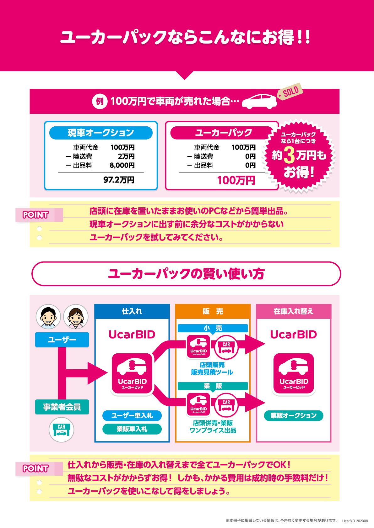 「UcarBID(ユーカービッド)」はユーカーパックが運営する中古車事業者様向けオークションです。